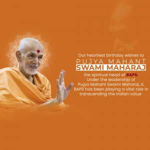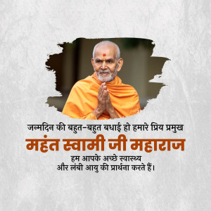 Celebrate Mahant Swami Maharaj Birthday with Brands.live! Create personalized posters and images using our collection of templates. Customize with photos, videos, and more. Join now for free and make his birthday memorable!